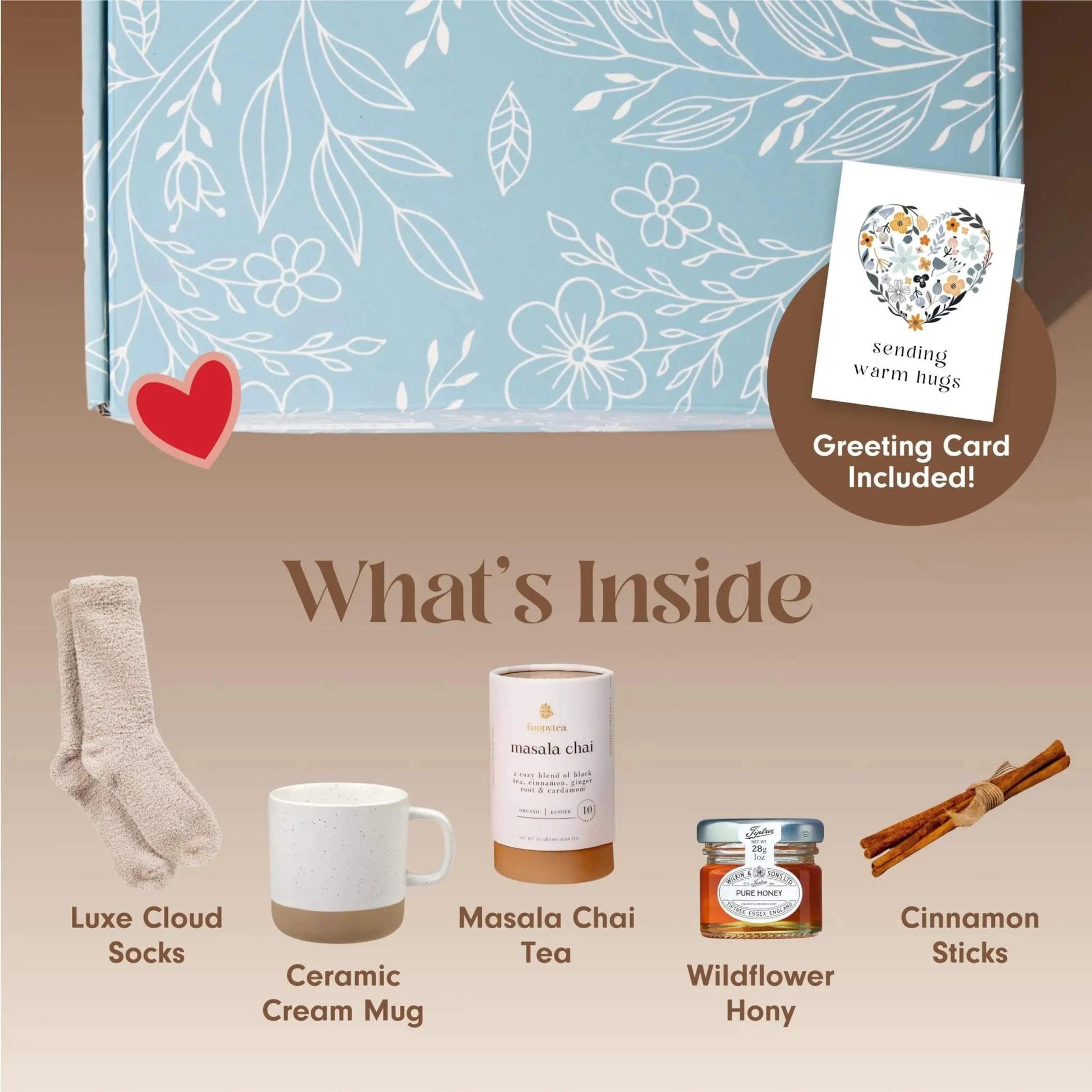 High-Quality Products: Each item in our tea gift box is handpacked and carefully selected to ensure the highest quality. From cozy fluffy socks to Organic Cedarwood Chai Tea our products are designed to provide the best pampering experience.